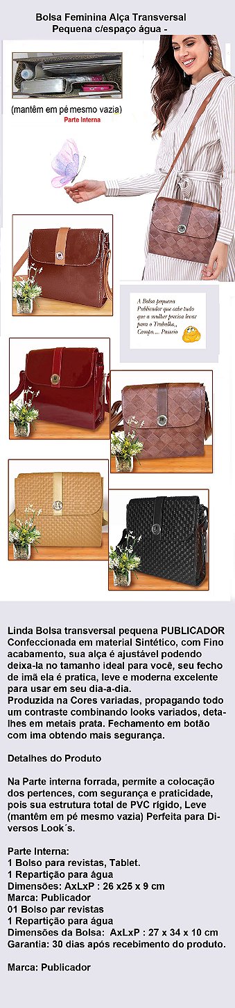 Bolsa Feminina Alça Transversal Pequena c/espaço água - Marrom Whisky