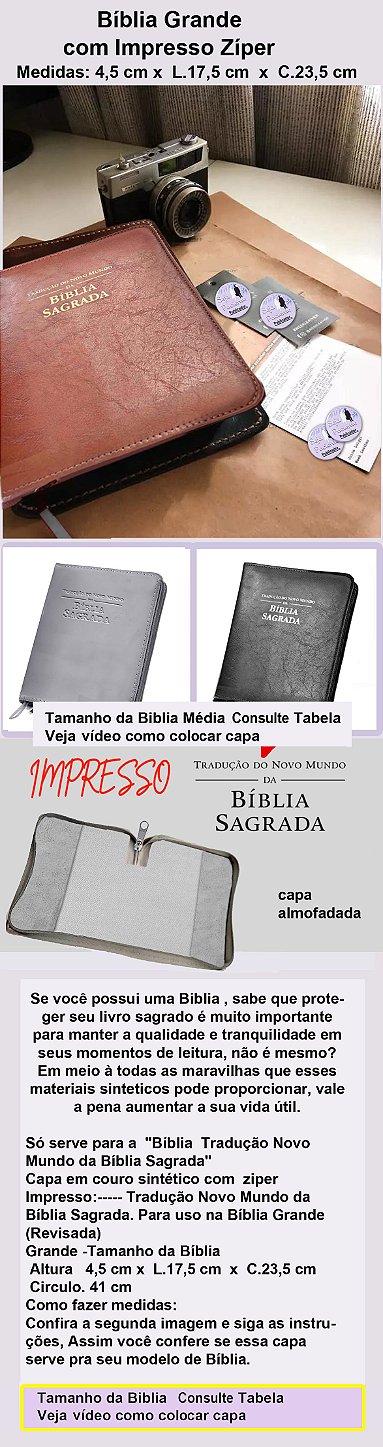 Capa para Biblia GRANDE com Ziper em sintético Impresso Baixo Relevo P/Tradução Novo Mundo